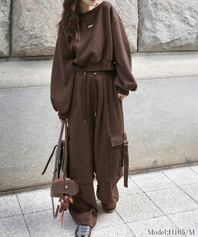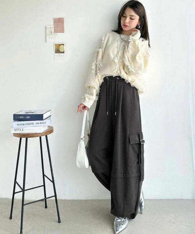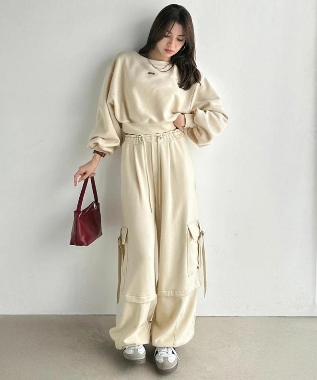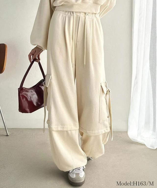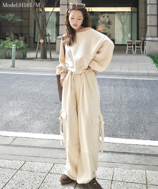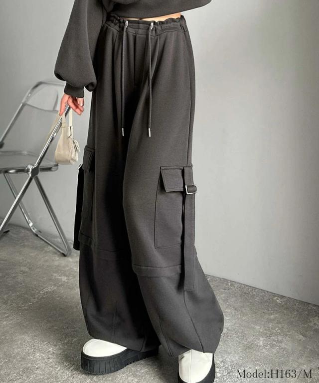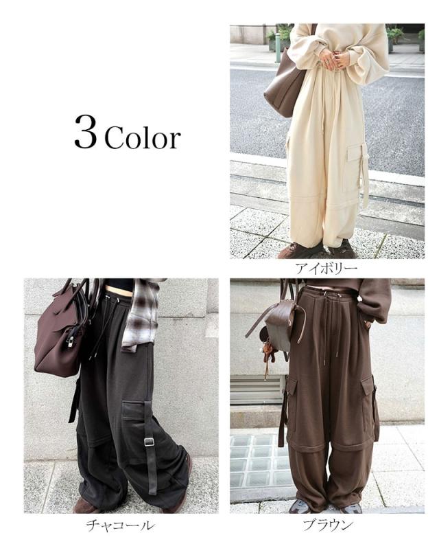 クラシカルエルフ冬新作 ボトムス パンツ レディース スウェット カーゴパンツ ワイドシルエット 裏毛 ゆったり ポケット ウエストタック入り トレンド フィット 立体感 デイリーユース 柔らかい リラックス 大きいサイズ 2025aw ce1015090