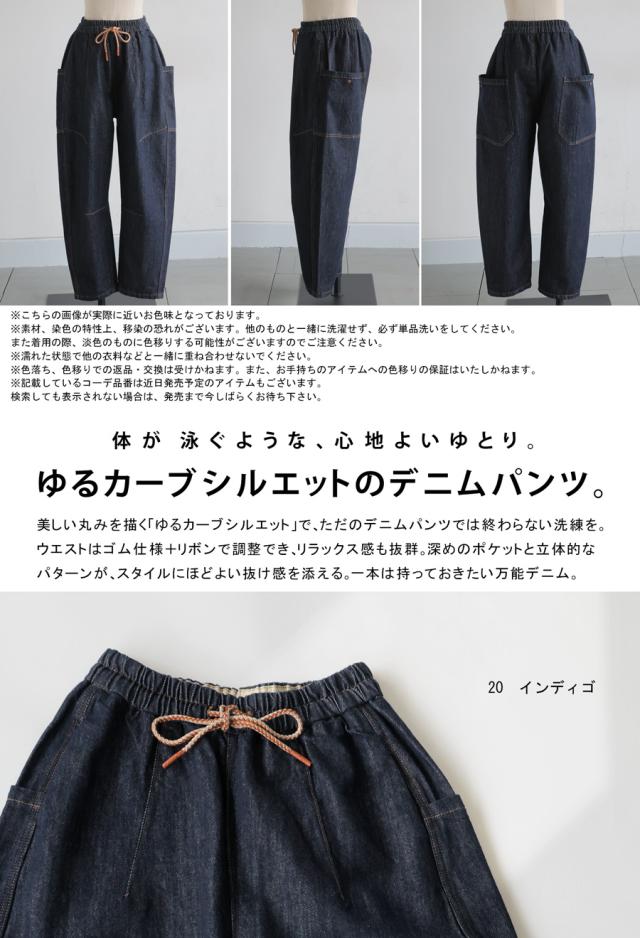 デニム レディース パンツ 立体カーブ ウエストゴム 送料無料・メール便不可 冬新作