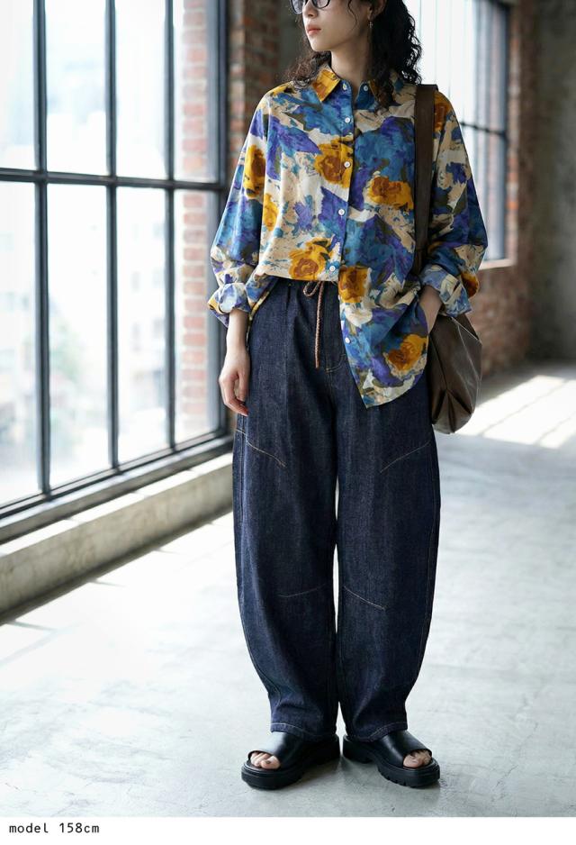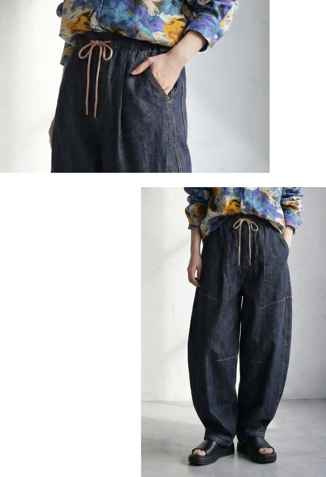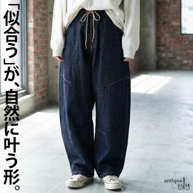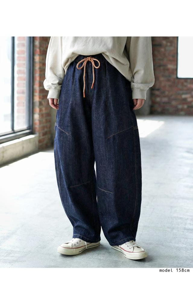 絶妙なカーブラインで立体感を引き出す、穿くだけで洒落感の出るゆったりデニムパンツです。