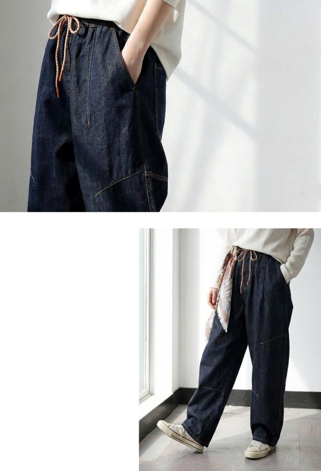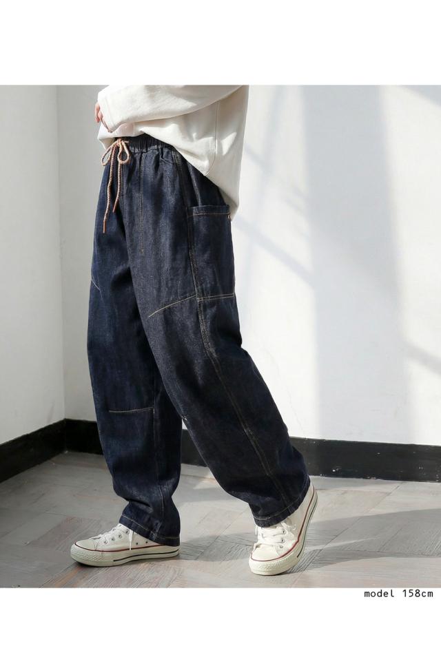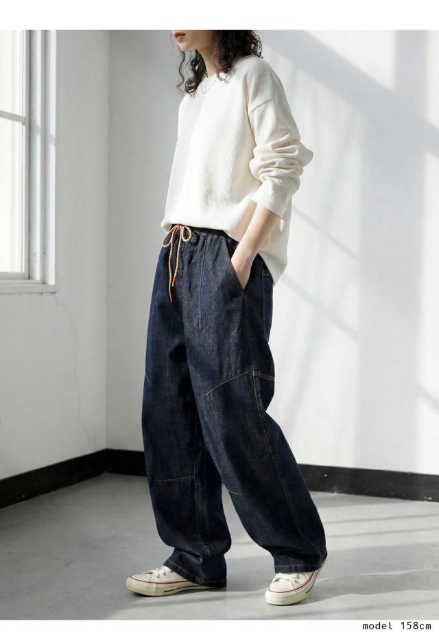 pj-01436 カーブパンツ ボトムス バレルレッグ バレルパンツ ゆったり デニムパンツ ステッチ入り 体型カバー 美脚ライン カジュアル 立体フォルム 無地 着痩せ 定番 シンプル