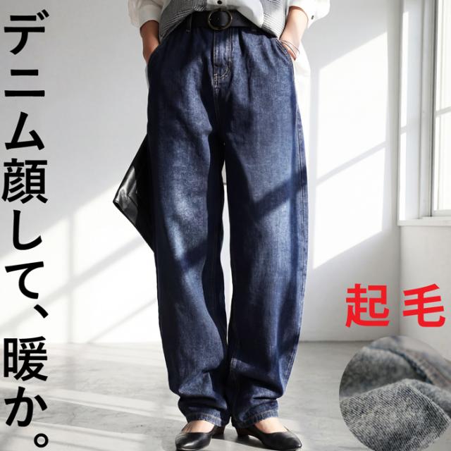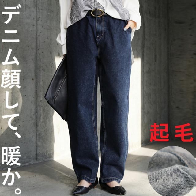 あったか2点10%OFF!7日20時〜14日10時 微起毛デニム レディース ボトムス テーパードパンツ 送料無料・メール便不可 冬新作