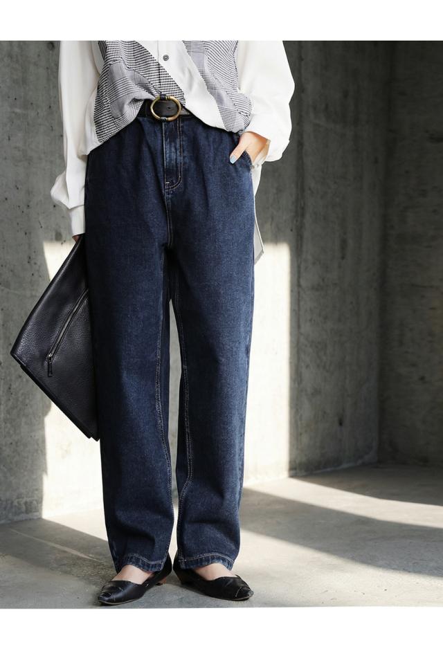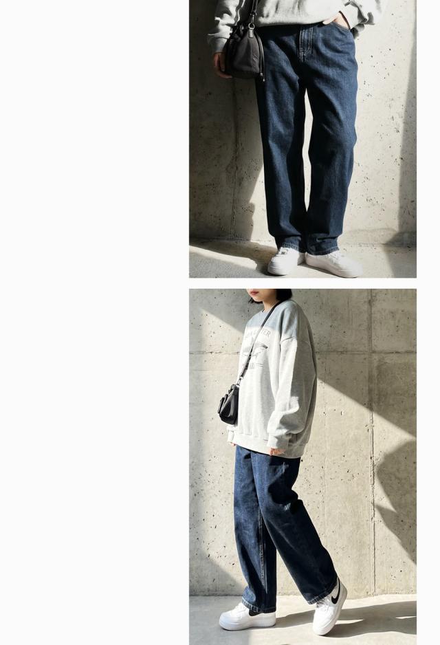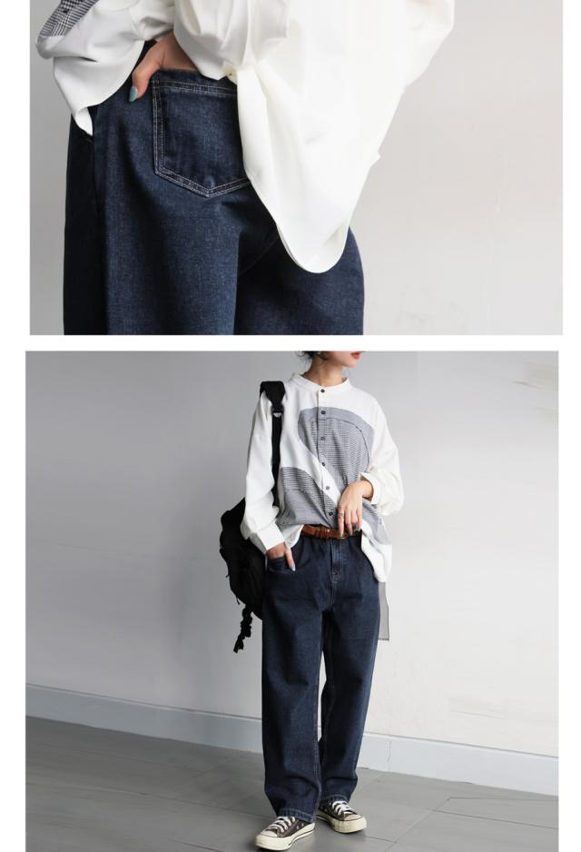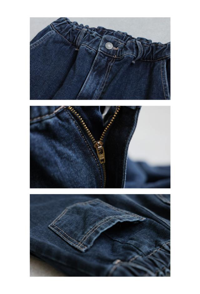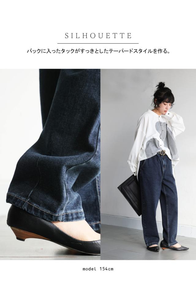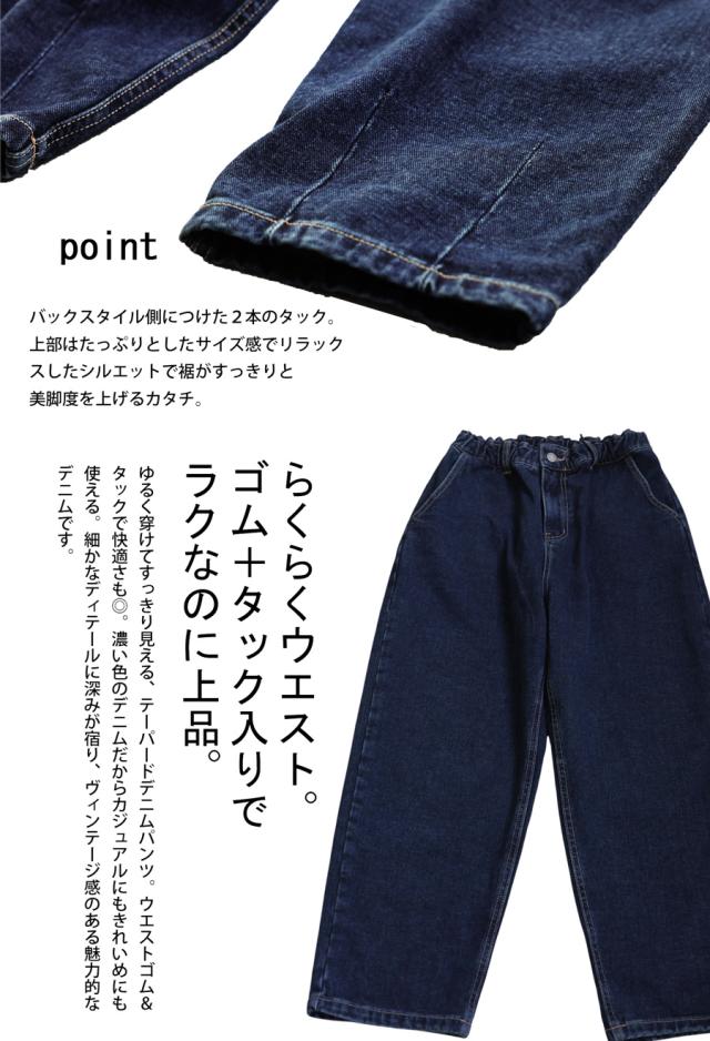 pj-01438 デニムパンツ デニム テーパード パンツ ゆったり シルエット カジュアル 美脚 微起毛 暖かい 体型カバー ポケット付 シンプル ナチュラル 着痩せ ウエストゴム ワイド