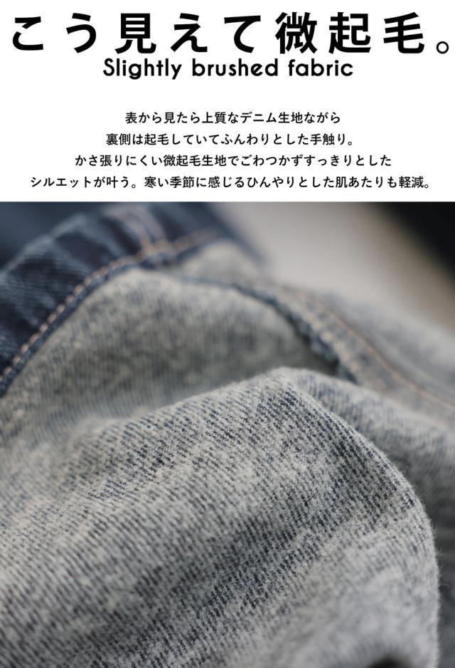 微起毛仕立ての上質なデニムパンツは、肌にふれる内側がふんわりとした手触りで快適な着用感を叶えます。