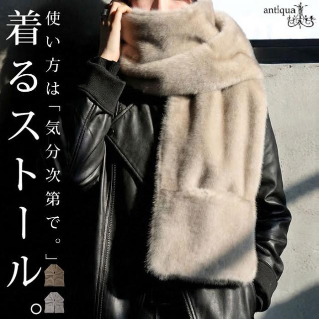 前を留めればファーベスト、肩に羽織ればショール、巻けばマフラーと、3WAYで楽しめる変形アレンジが可能な優秀アイテムです。