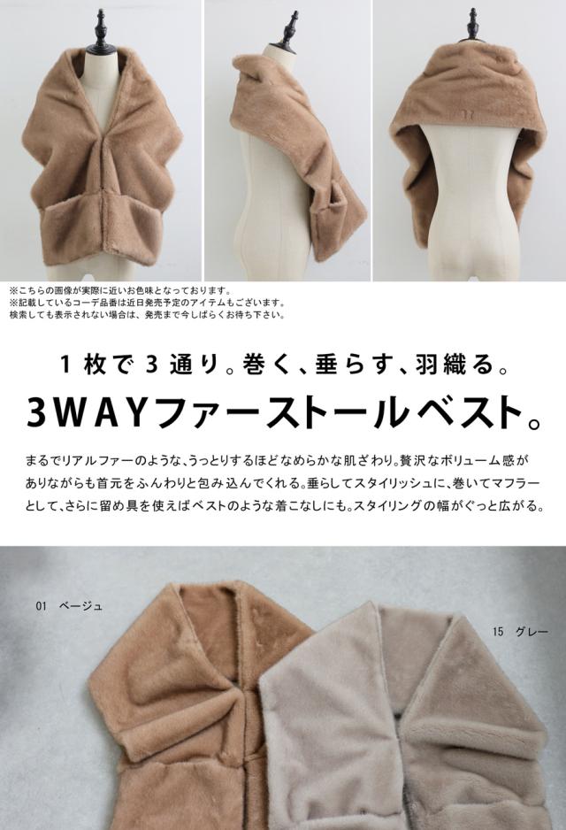 あったか2点10%OFF!7日20時〜14日10時 フェイクファー 3WAY ストールベスト レディース 送料無料・メール便不可 冬新作