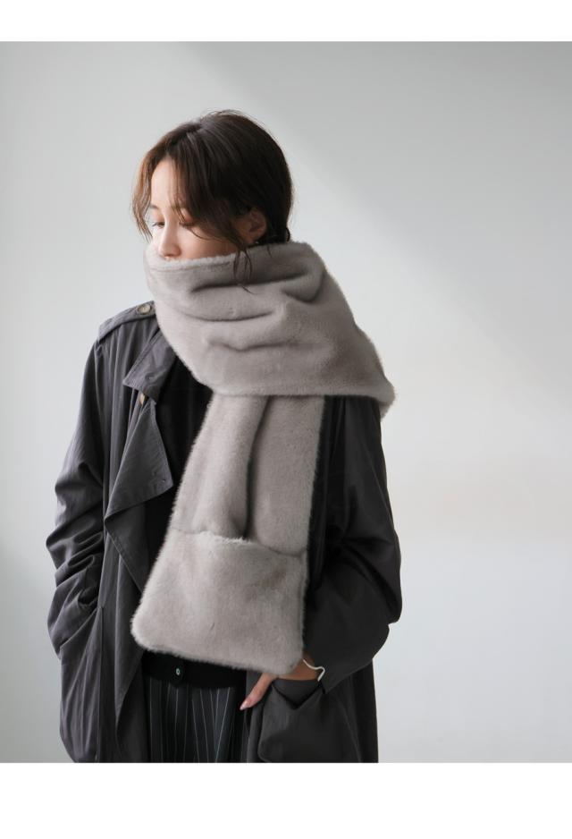ふんわりとした肌触りが魅力のエコファー(フェイクファー)素材を贅沢に使用したストール。