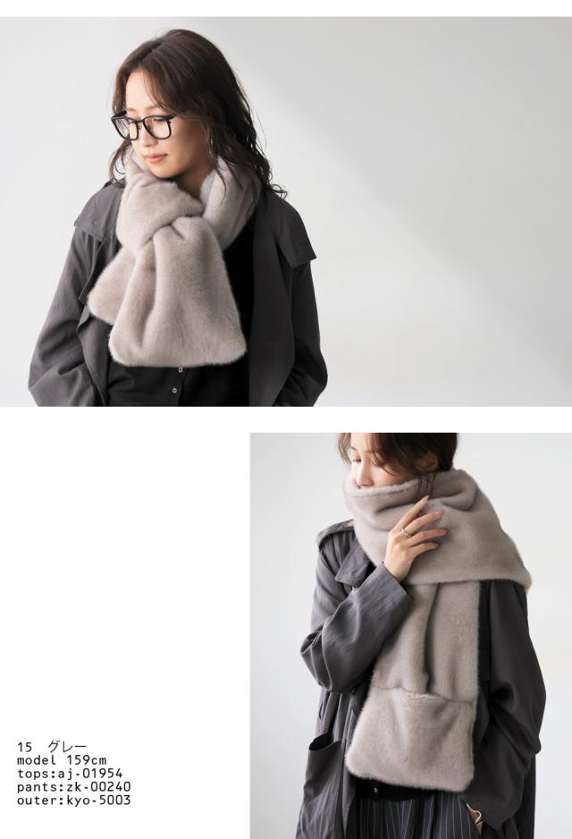 pj-01429 エコファー ストール マフラー ファーベスト 防寒 防風 小物 アレンジ 変形 ショール 羽織り ボリューム あったか 暖かい おしゃれ 上品 ふんわり 高見え 高級感 無地