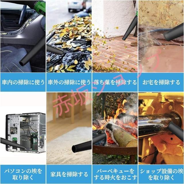 【ブロワー用途】落葉掃除、車の掃除、ケースのほこり、庭の掃除、工業掃除、家庭の掃除、コンピュータやその他の電気製品に蓄積されたほこり、布団、壁の隅、死角、ベッドの底、カーペット、ペットの毛、家具、毛髪のゴミなどを簡単に吸い取ります