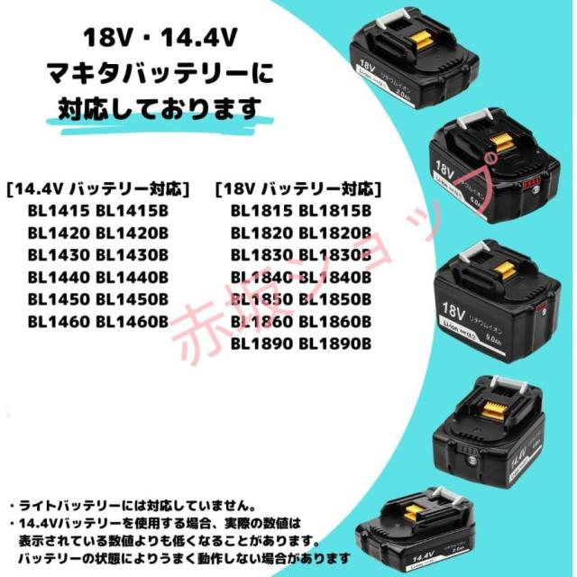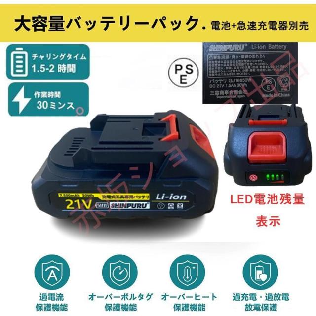 【21V MAX バッテリー2個 別売+充電器 別売&マキタの18Vバッテリー通用】大容量21V MAX電池と充電器を採用し。それはまた持っています過電流保護、過電圧保護、過熱保護、充電および放電保護により、安全で耐久性があります。それに、この商品の本体はマキタ18VリチウムイオンバッテリーBL1820b BL1830b BL1840b BL1850bBL1860bにも対応できます。