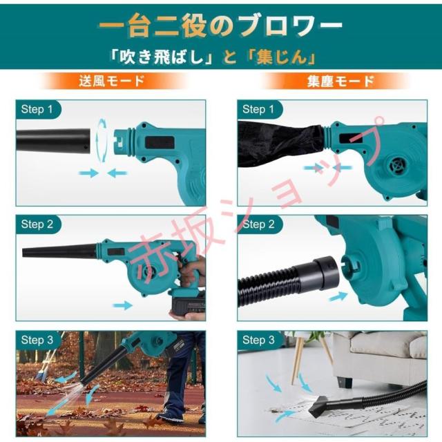 充電式 集塵機 ブロワー21V 多点セット 収納ケース付き マキタ makita18Vバッテリー 併用 集塵 洗車セット エアダスタ空気収じん機 一台多役