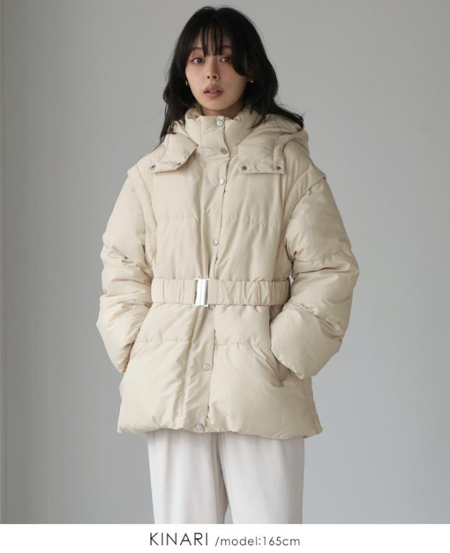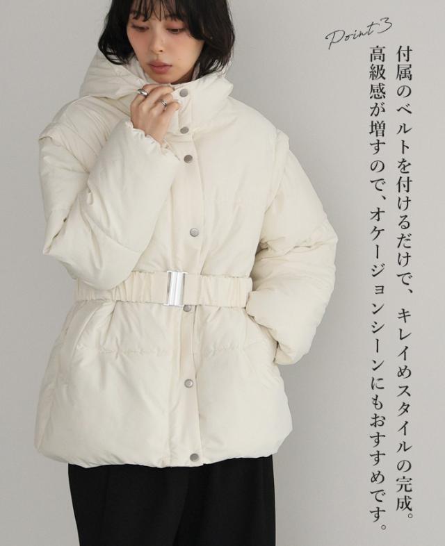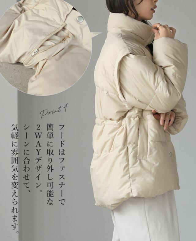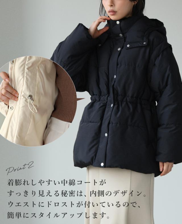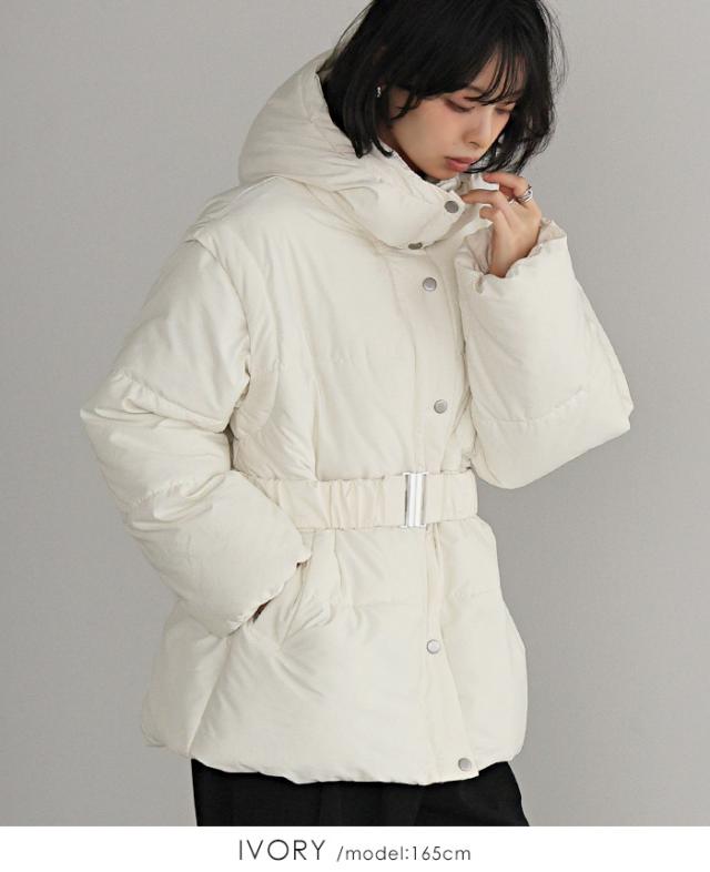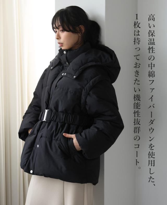 [新作限定P10%×送料無料]ファイバーダウン中綿コート ダウン キルト レディース アウター 長袖 ハイネック 防寒 あったか ベルト 2way フード付き 体型カバー 冬新作 【メール便不可】