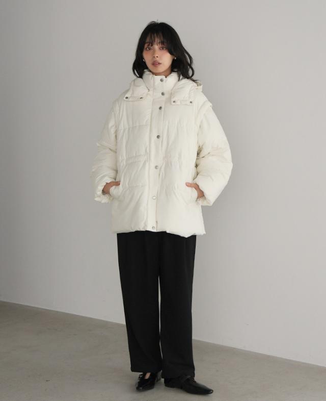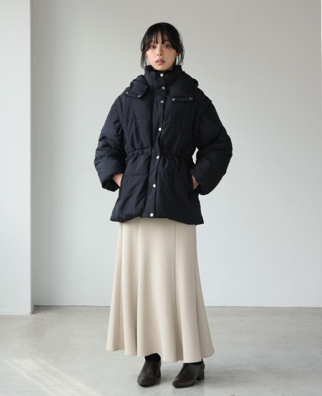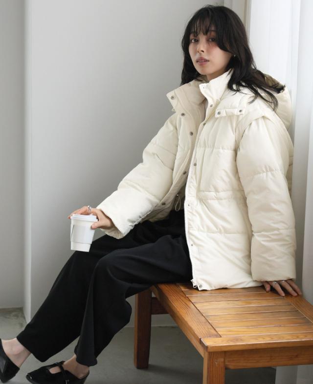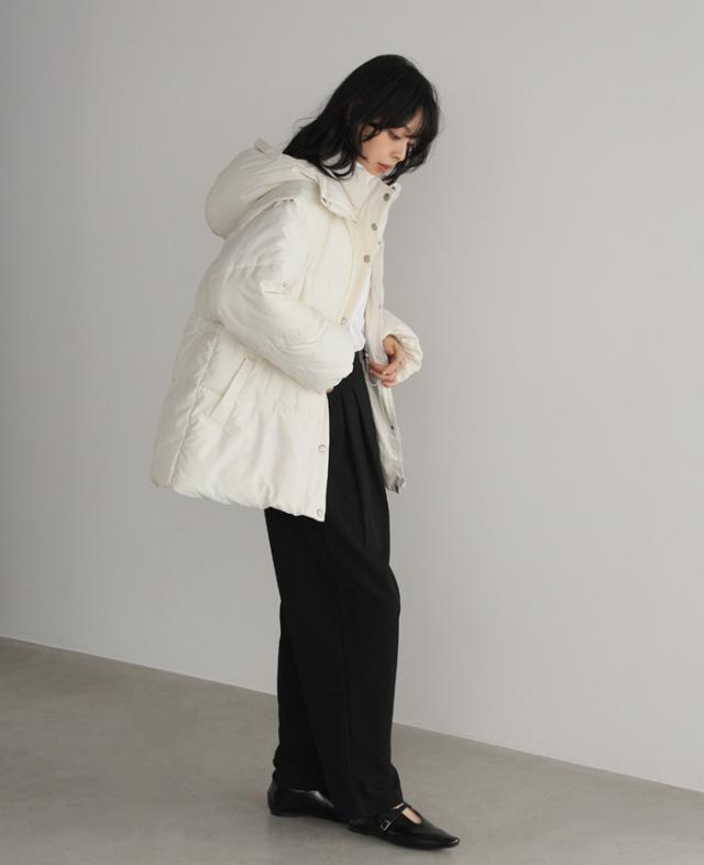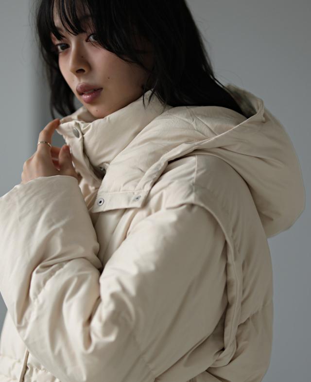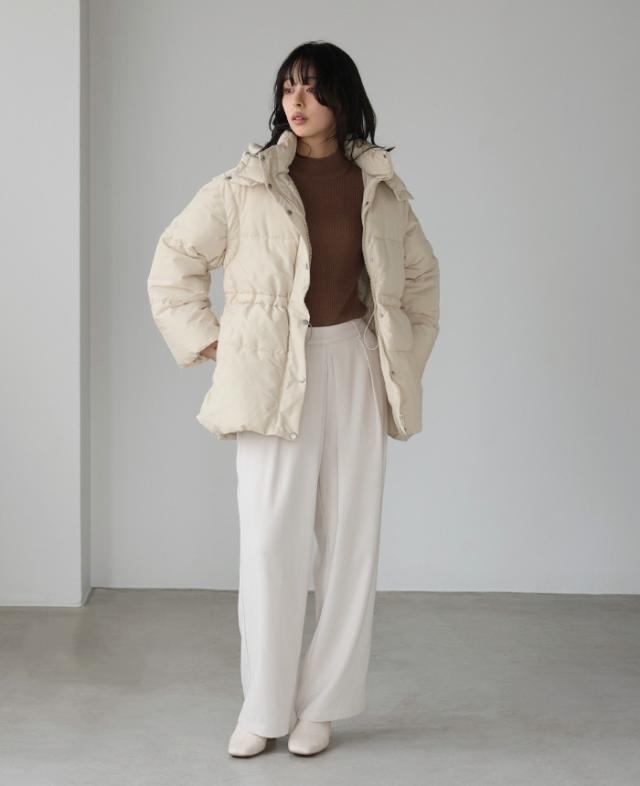 ![]() ![]() ![]() ![]() ![]() ![]() ![]() ![]() ![]() ![]() ![]() ![]() ![]() ![]() ![]() ![]() ![]() ![]() ![]() ![]() ![]() ![]() ![]() ■Comment 軽やかな着心地と高い保温性を兼ね備えた、ふかふかの中綿コート。 中綿にファイバーダウンを採用し、軽量ながら暖かく快適な着心地に。 フードは取り外し可能で、ウエストはドロストとベルトでメリハリが出るデザイン。 フロントはファスナーとスナップボタンで開閉、ハイネックで首元をガード。 お出掛けにおすすめの、寒さに強いアウターです。 ■Size(cm) 【M】:着丈70 バスト124 肩幅46 袖丈57 袖口20-34 天幅28 ネック高9.5 裾周り142 フード顔回り74 ベルト88-127 ■Fabric 本体:ナイロン55% ポリエステル45% 中綿・裏地:ポリエステル100% 生地感:さらっとして少しシワ感があり、中にファイバーダウンを入れたキルト生地 ※ファイバーダウンとは 繊維を超極細の綿にし、通常のダウンよりも軽くて柔らかな仕上がり。 中綿でありながら、たっぷりとしたボリューム感と保温性が高いのが特徴です。 裏地:あり 伸縮性:なし 透け感:なし 生地の厚さ:厚手 ■Weight 本体(ベルト・フード含む):約813g ※ベルト単体:51g フード単体:136g ■Color アイボリー(黄みがかった白) キナリ(ベージュがかったアイボリー) ブラック(標準的な黒) ■Country of origin 中国 ■洗濯表示