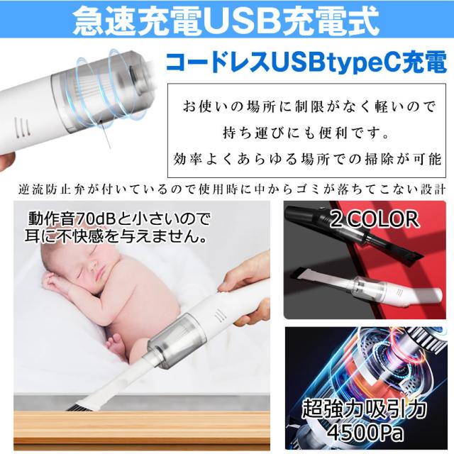 ランキング1位獲得 掃除機 ハンディ コードレス ハンディクリーナー ハンディ掃除機 小型 軽量 充電式 USB 強力 掃除 車 車用 掃除機 掃除機 ハンディ 卓上クリーナー 車載掃除機 ハンドクリーナー ブラック ホワイト 黒 白 パワフル吸引 DECLINA