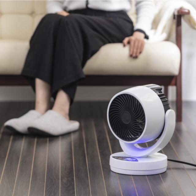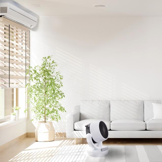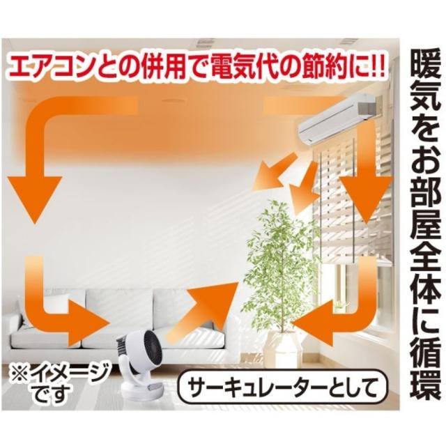 冷風モード(消費電力35W)は、サーキュレーターとして室内の空気を効率よく 循環させ、エアコンと併用することで省エネにも貢献します。