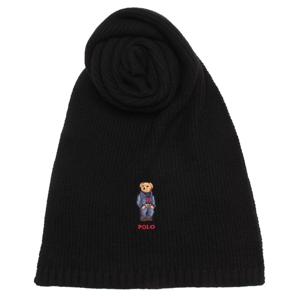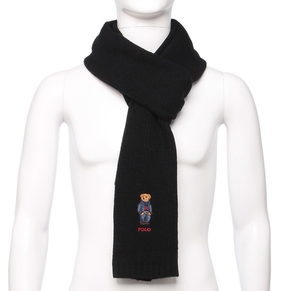 ●商品名:ポロラルフローレン マフラー ソリッド デニム ベア スカーフ ポロベア ニット ブラック メンズ RALPH LAUREN PC1464 001 SOLID DENIM BEAR SCARF BLACK