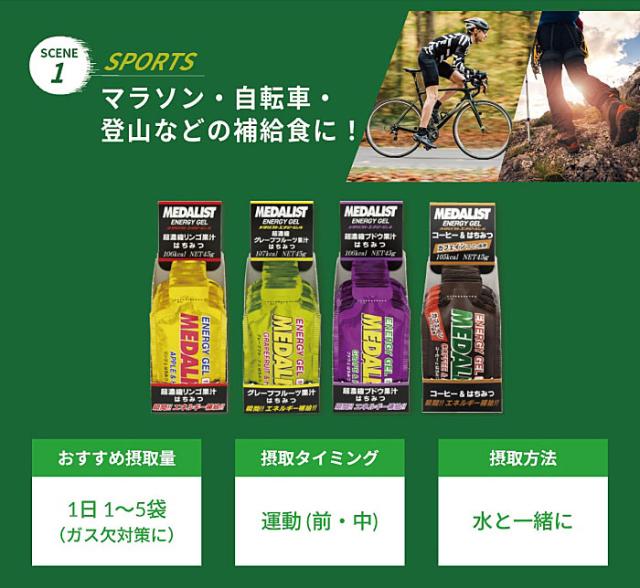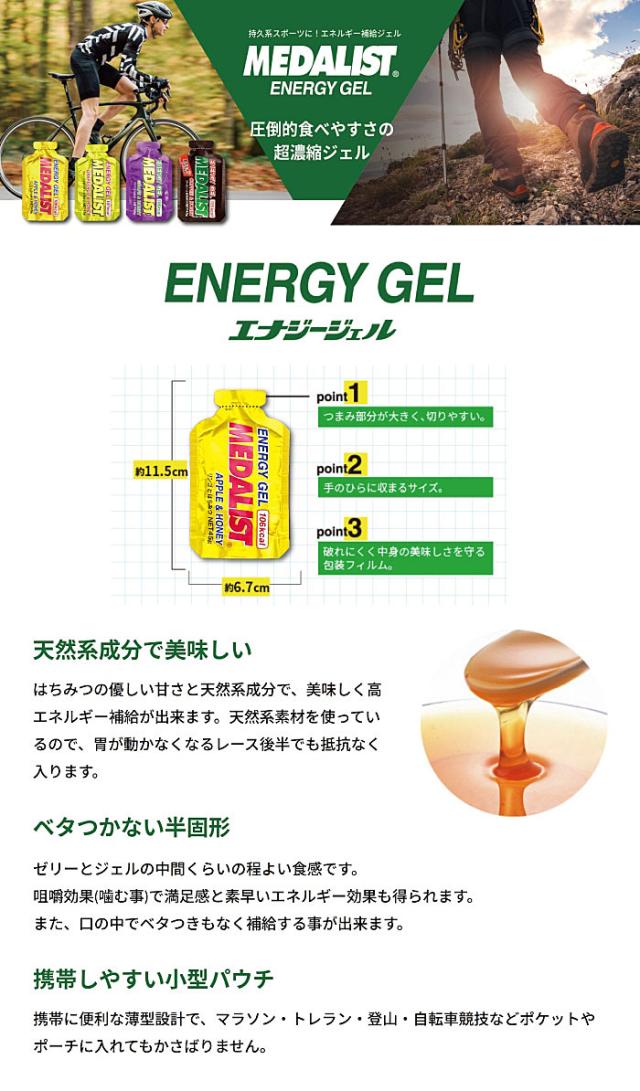 【送料無料】メダリスト 2761 エナジージェル(リンゴとはちみつ)【45g,106 kcal】12袋入り 補給食 MEDALIST 株式会社アリスト