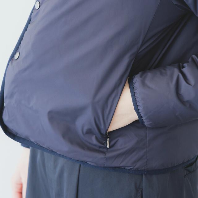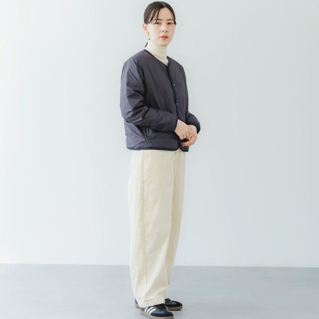 マットな質感としなやかな手触りが魅力。 高密度ポリエステルタフタを使用した、ミニマルで上品なライトダウン。