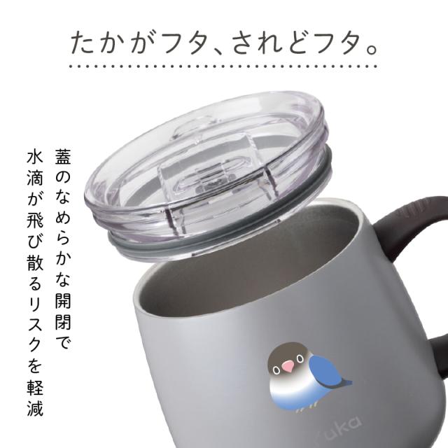 \水滴のとびちり“0”を実現!/特許取得のなめらかスライド蓋×真空断熱構造。大人気癒やしの“ぽてっと小鳥さん”デザインで鳥好きさんも毎日ほっこり。