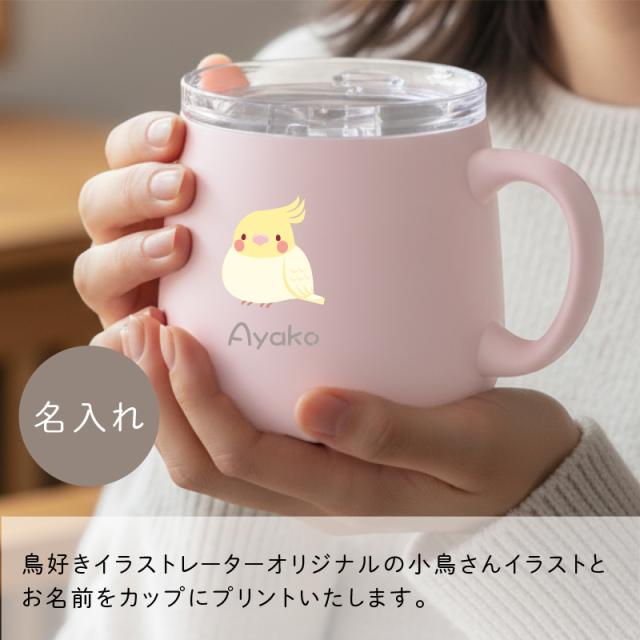 マグカップ 真空断熱 保温 保冷 名入れ 【 ぽてっと小鳥さんマグカップ 】 蓋付き 大きめ ふた付き フタ付き 広口 ステンレス コーヒー カップ かわいい 鳥グッズ 鳥好き 女性 プレゼント ギフト シマエナガ セキセイインコ 文鳥 390ml 送料無料 翌々営業日出荷 いきもの