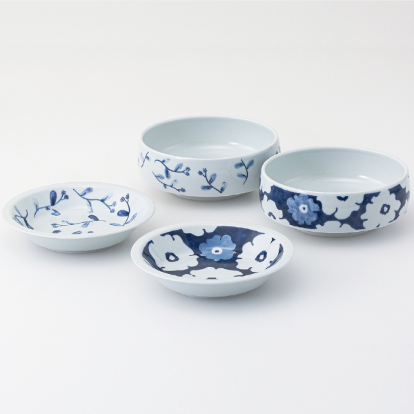 藍花 小皿小鉢ペア 31108 2個、和皿、西海陶器、日本製、国産、化粧箱入、送料無料、電子レンジ、食洗器可、すくいやすい、マルチボウル、プレート、保存容器