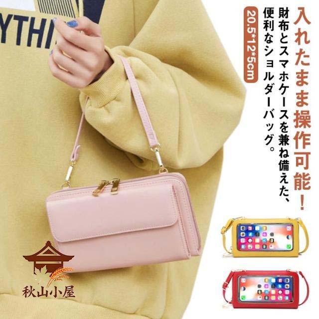 スマホポーチ 財布 横型 入れたまま 操作 レディース スマホショルダーバッグ スマホポシェット おしゃれ レザー調 pu革 軽量 防水 斜めがけ ショルダー ポーチ ストラップ 長さ調節 カード入れ お札入れ 小銭入れ 高級感 【送料無料】
