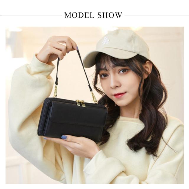 | 財布とスマホケースを兼ね備えた、便利なショルダーバッグ。【入れたまま操作可能!】 横にお札を折らずに入れられます。6枚カード収納可能。センターファスナーポケットには小銭収納も可能!見た目以上の収納力で機能性も抜群です! 片面がクリアになっているので、かばんに入れたままでもスマートフォンの画面が操作できます。 紐の長さが調整できるのでお好きな長さでお使いいただけます。 PUレザーで肌触りもよく、カラーも豊富なラウンドファスナーのショルダーバッグとしても活躍します。 ちょっとしたお買い物はもちろん、サブバッグとしても◎アクセサリー感覚でお使いいただけます! | |
