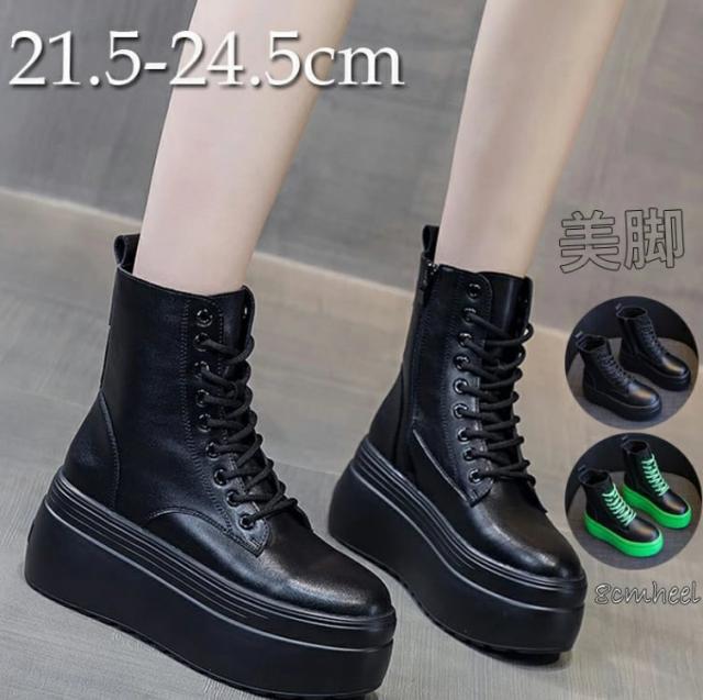 ブーツ レディース 厚底 ショートブーツ ぺたんこ 歩きやすい 黒 ヒール8cm フラット コスプレ 大きいサイズ ブーツ 編み上げ
