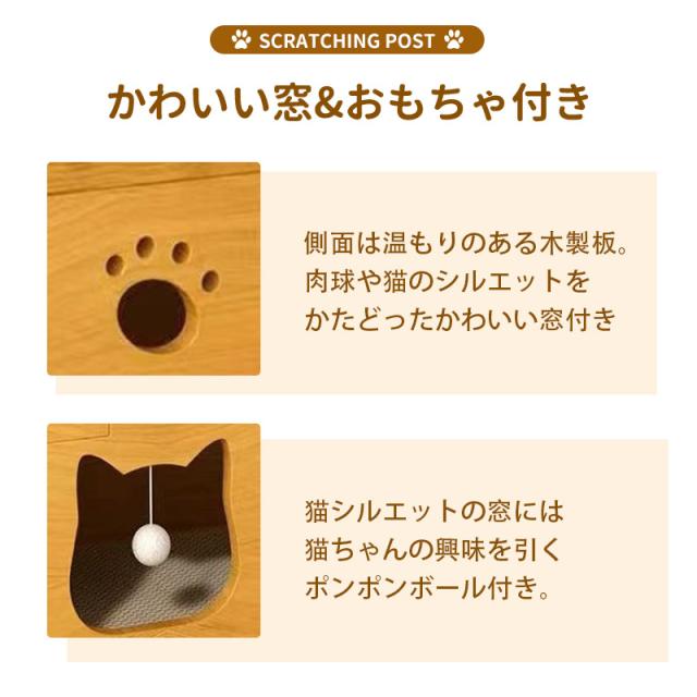 天井と床は爪とぎのできる高密度のダンボール製。