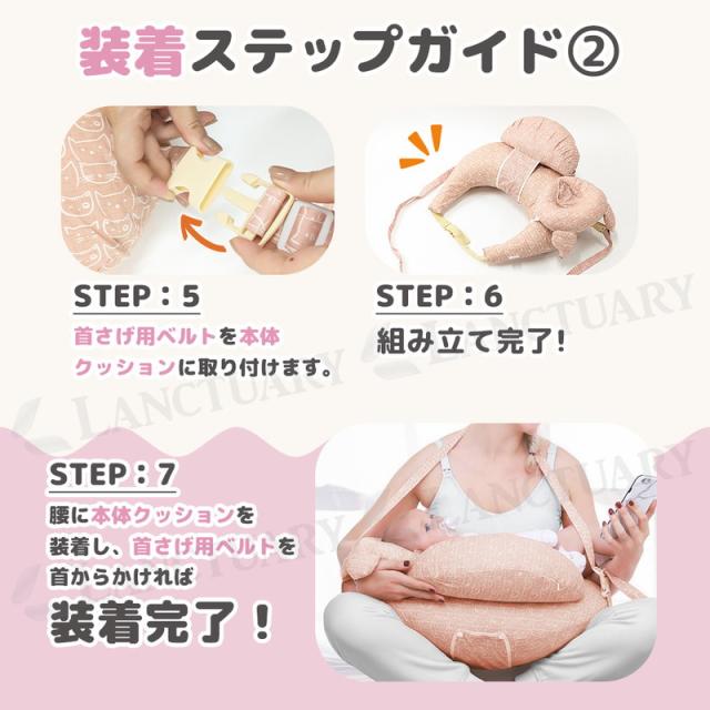 抱き枕・ベビー枕・ガード独立構造で高い汎用性。補助ベルト&バックル付きで両手を解放、授乳時の肩・腕・腰の負担を軽減。