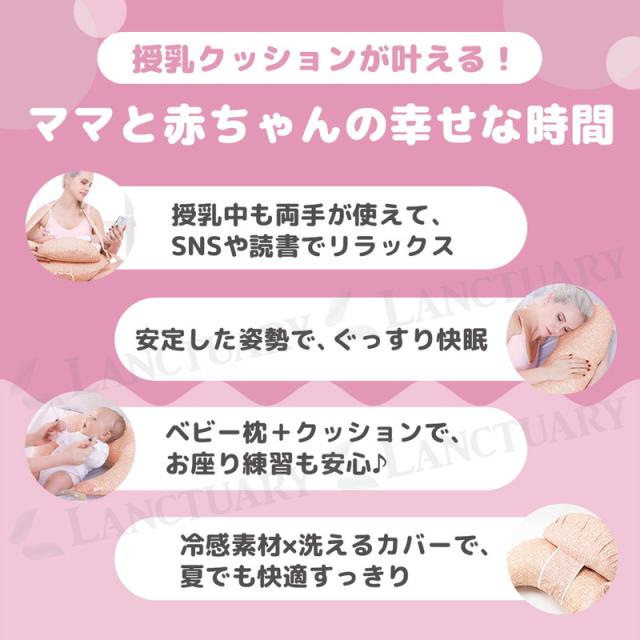 | 商品の説明 | 多機能5WAY構造 妊娠中から産後 ベビーの成長まで対応。 この最新型U字型授乳クッションは 妊娠中の横向き寝サポートから産後の授乳 ベビーのお座り練習まで一台で5通りの役割を果たす多機能設計です。 抱き枕、本体ベビー枕、ガードの独立、インナーライナー構造により、クッションを単体でも使用可能。 成長に合わせて長く使えるため他社品にはない高い汎用性を実現しました。 両手解放を実現する補助ベルト&差し込みバックル。 授乳時の肩や腕 腰への負担を軽減するため 補助ショルダーストラップを標準装備しました。 首掛け式でクッションがずれず両手を完全に解放します。 授乳中もスマホ操作や読書ができストレスフリーです。 ウエストサイズに合わせて多段階調節が可能な差し込み式バックルにアップグレードし、どんな体型のママにもパーフェクトフィットします。 従来の煩わしいスナップボタン式よりも格段に素早く快適に装着できます。 ひんやり冷感 アイスシルク素材で夏も快適。 暑い季節の授乳時も快適に過ごせるようにアウターカバーにはアイスシルク植物繊維を採用しました。 接触冷感性と抜群の通気性 吸水性で汗をかいても、すぐに吸湿排出し、肌に触れるとサラサラひんやりとした感触が持続します。 蒸れやすい季節でもママと赤ちゃんに最高の快適性を提供します。 カバーは洗濯機で丸洗い可能 常に清潔な状態を保てるため衛生的にも安心です。 赤ちゃんに優しい設計を徹底し、肌への刺激を防ぐコンシールファスナー(隠しジッパー)を採用しました。 しっかりとしたサポート力でお座り練習にも最適です。 この多機能授乳クッションは 出産準備品としてはもちろん、大切な方への出産祝い、マタニティギフトとしても大変喜ばれます。 最高の快適性で 毎日の育児と休息の時間をサポートします。 |