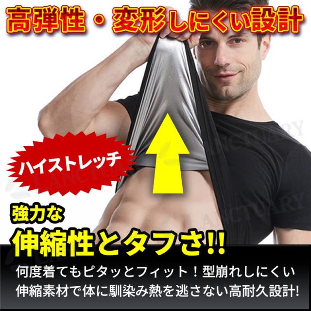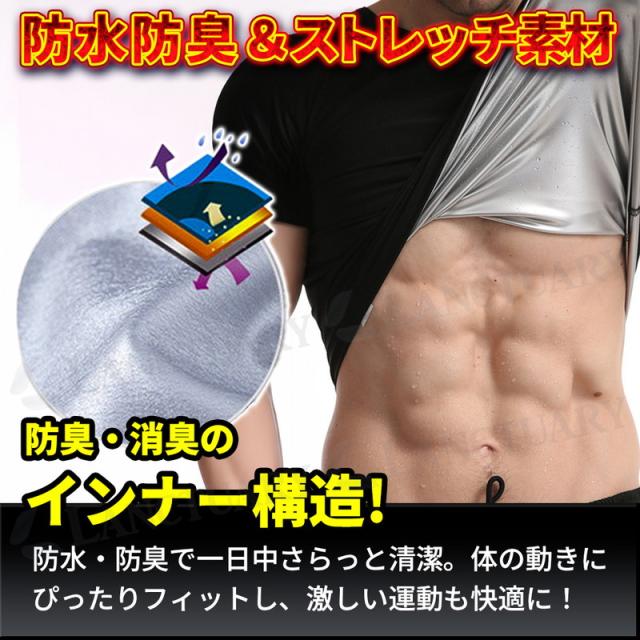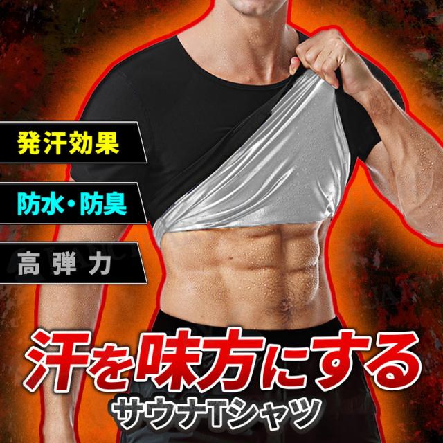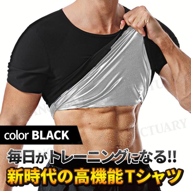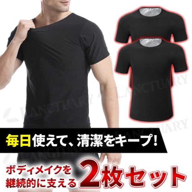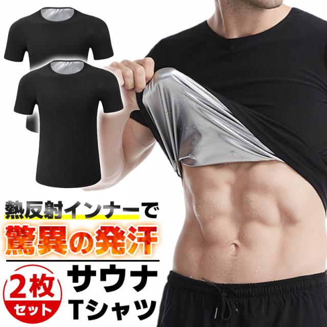 サウナスーツ シャツ メンズ 半袖 Tシャツ 2点セット 着るサウナ ヒートシャツ ウェア サウナインナー サウナ ダイエットスーツ ダイエット 洗濯可能 大きいサイズ インナー ダイエット 引き締め フィットネス 発汗 防臭 防水 高弾力 トレーニングウェア 黒