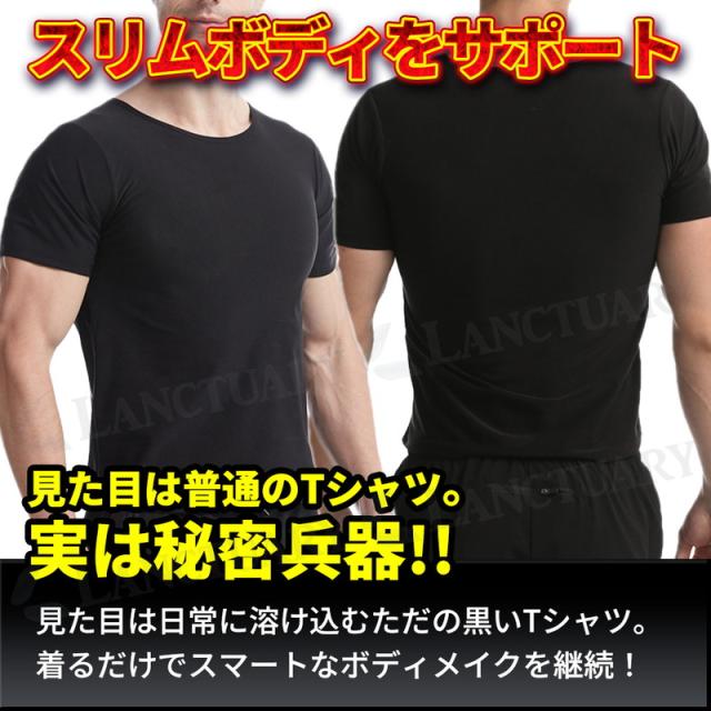 【スリムボディをサポート】見た目は完全Tシャツの秘密兵器!日常に溶け込む黒Tシャツなので、着るだけでスマートなボディメイクを続けることができます。