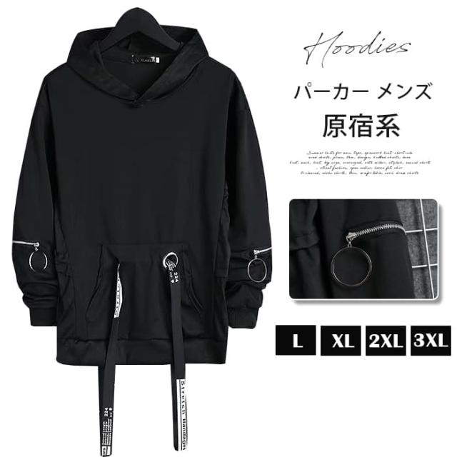 パーカー メンズ プルオーバーパーカ 長袖 ストラップ付き プルパーカー フード付き 袖ジップ スウェット トップス ポケッ