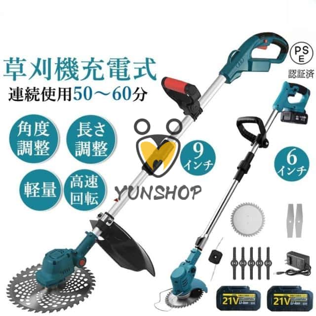 電動草刈機 充電式 草刈り機 コードレス バッテリー互換 電動刈払機 伸縮式 グラストリマー 角度調整 替え刃付き 枝切り 業務 産業用
