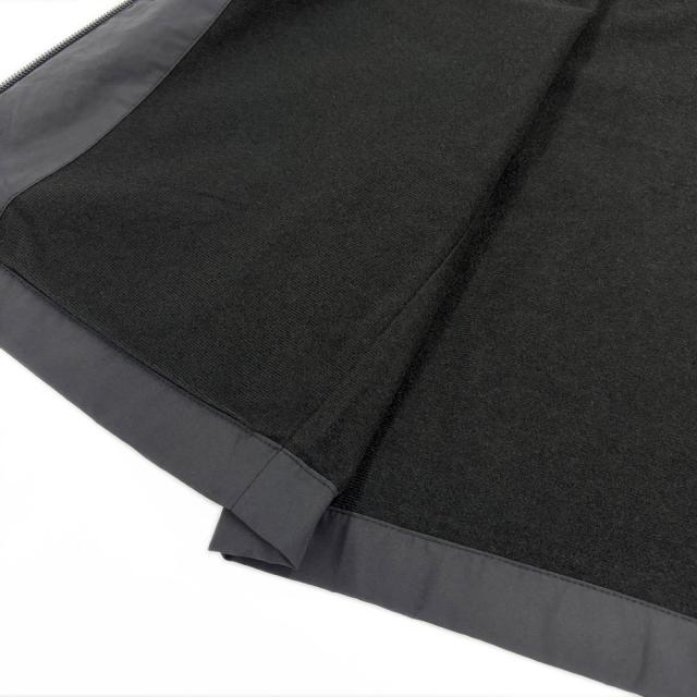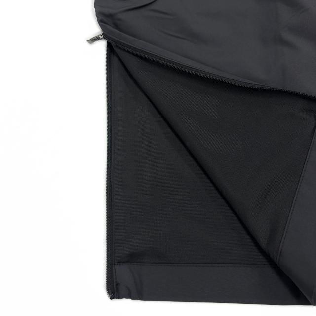 表地には防風性および優れた撥水性を追求したタフタ素材を採用し、肌面には起毛のトリコットを配すことで肌触りと保温性を追求。