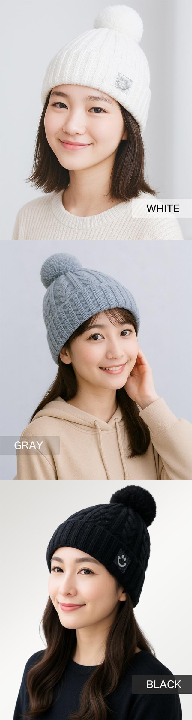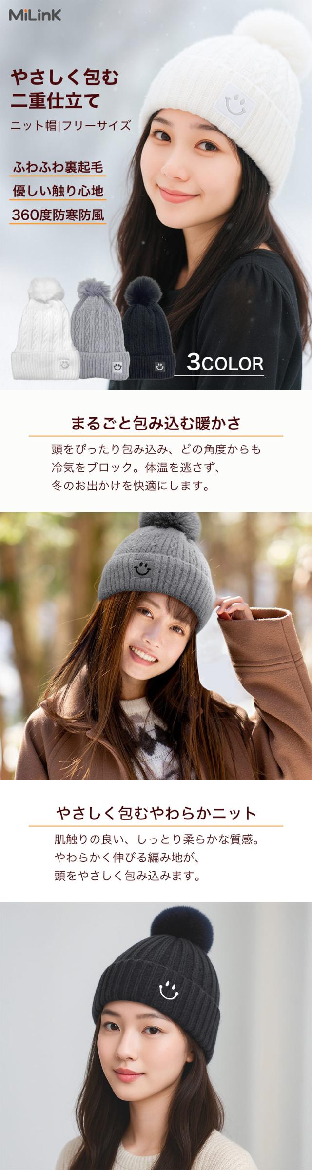 ニット帽 暖かい 厚手 冬 もこもこ 無地 柔らかい 防寒 防風 保温 ゆったり 大きめ 大きいサイズ フリーサイズ レディース メンズ 子供 ポンポン おしゃれ 3色 黒 白 グレー