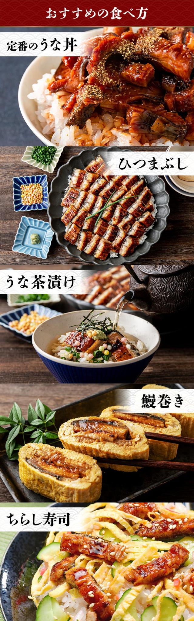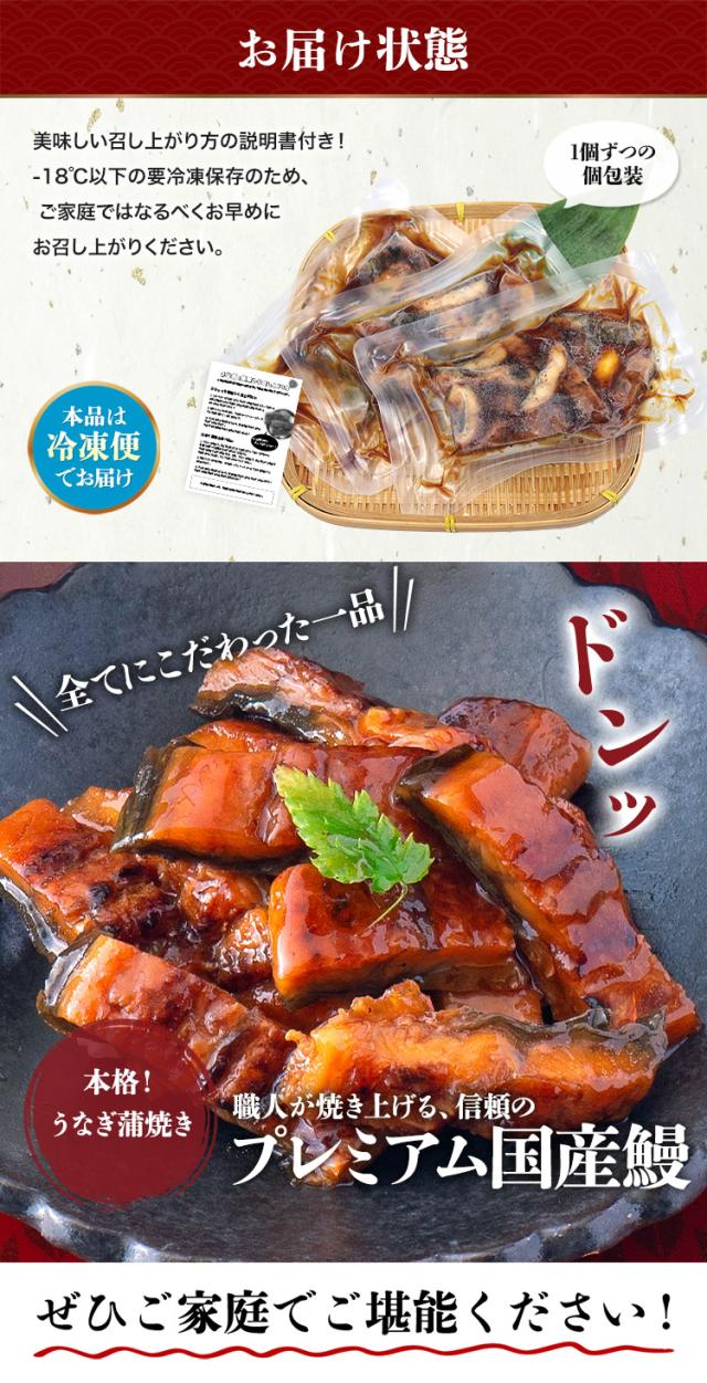うなぎ(鹿児島県)、しょうゆ(大豆・小麦を含む)、砂糖、みりん、水あめ、発酵調味料