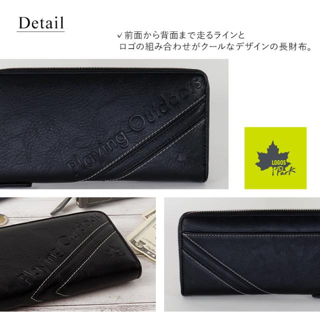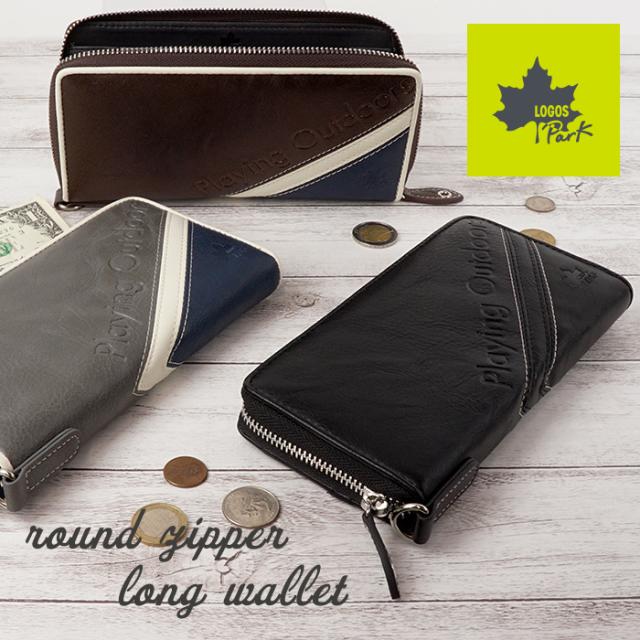 LOGOS Park 長財布 メンズ 合成皮革 ラウンドファスナー 大容量 シンプル 財布 フェイクレザー おしゃれ ギフト プレゼント ロゴスパーク ファスナー長財布