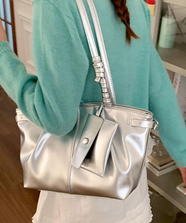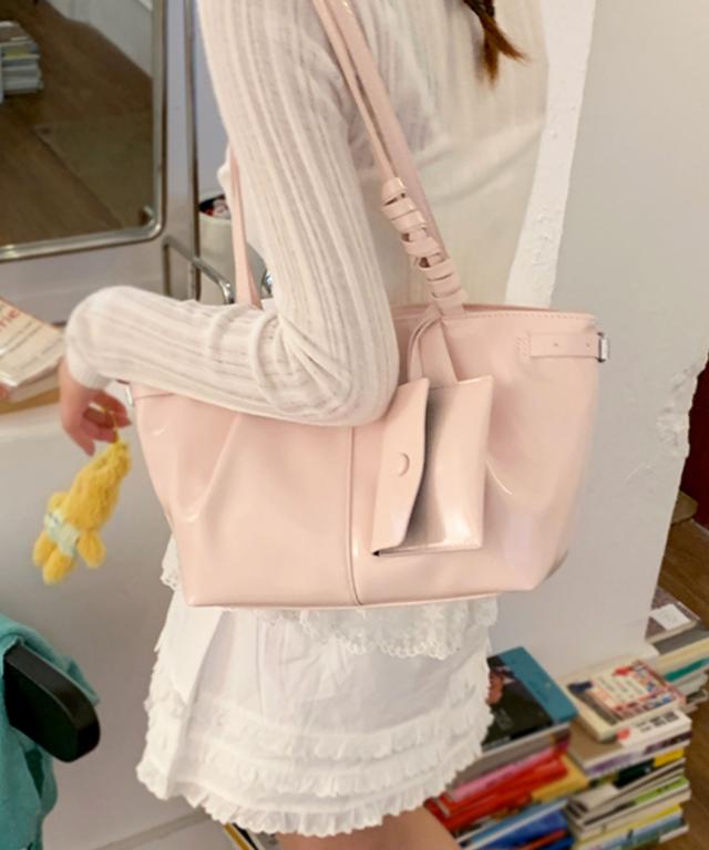 【ポーチチャーム付/おしゃれなサイドベルトデザイントートバッグ/ハンドバッグ】