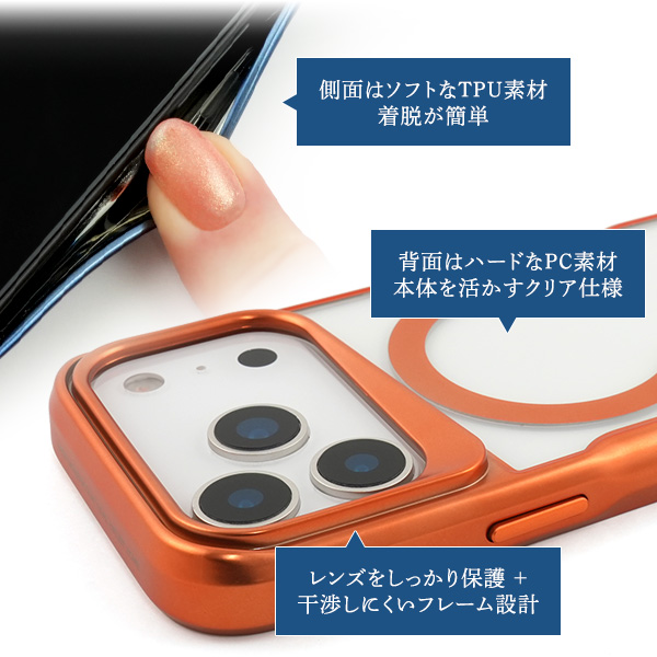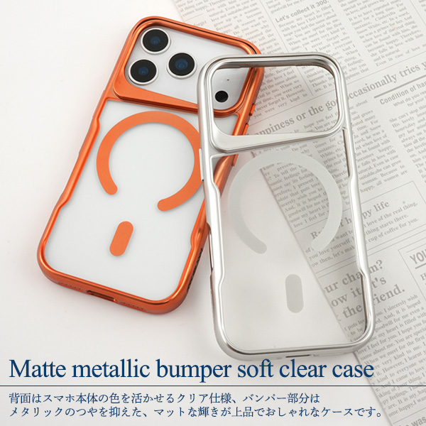 スマホケース iPhone17Pro MagSafe対応 マットメタリックバンパー ソフトクリアケース アイフォン17プロ 背面 保護 カバー 透明 クリア 光沢 シンプル アイホン スマホカバー マグセーフ対応 新機種 iPhone 17Pro アイフォン17Pro