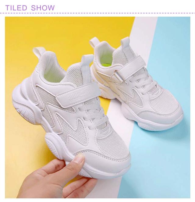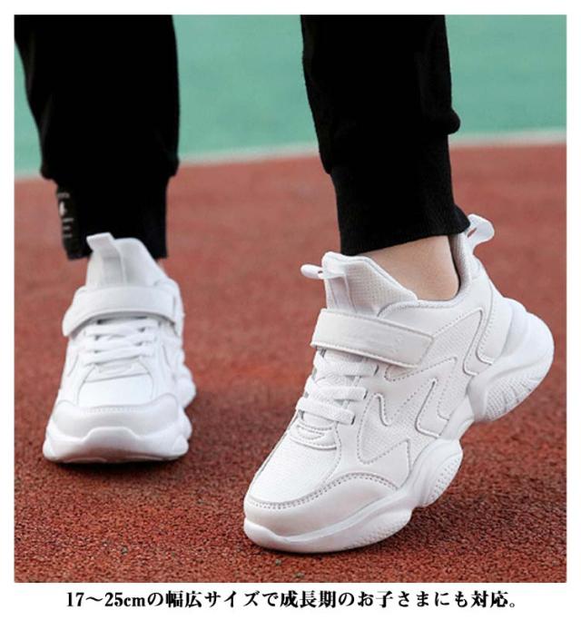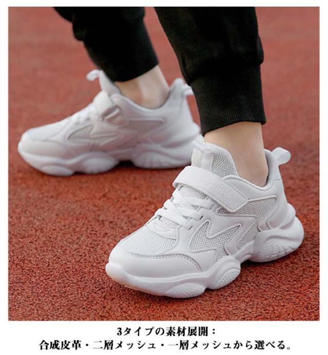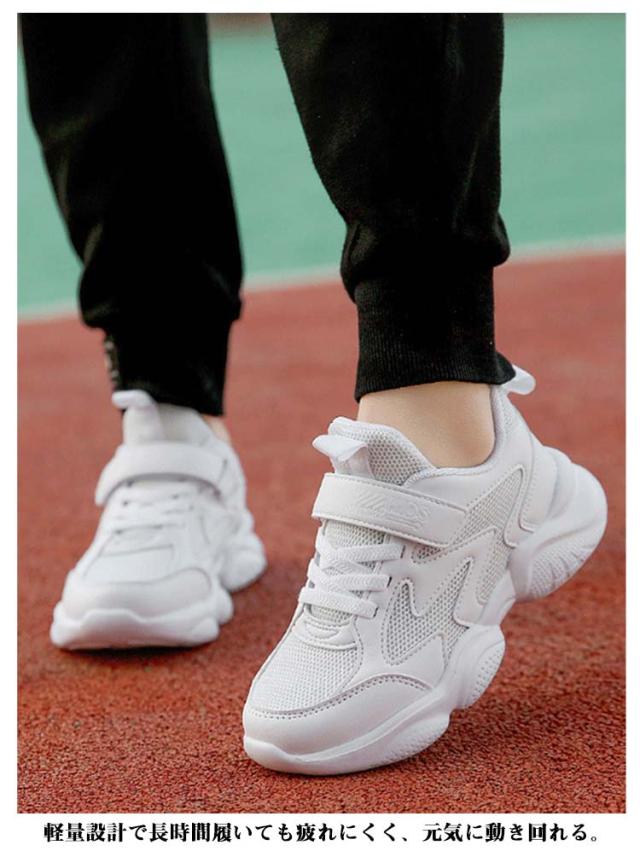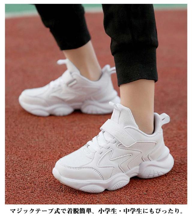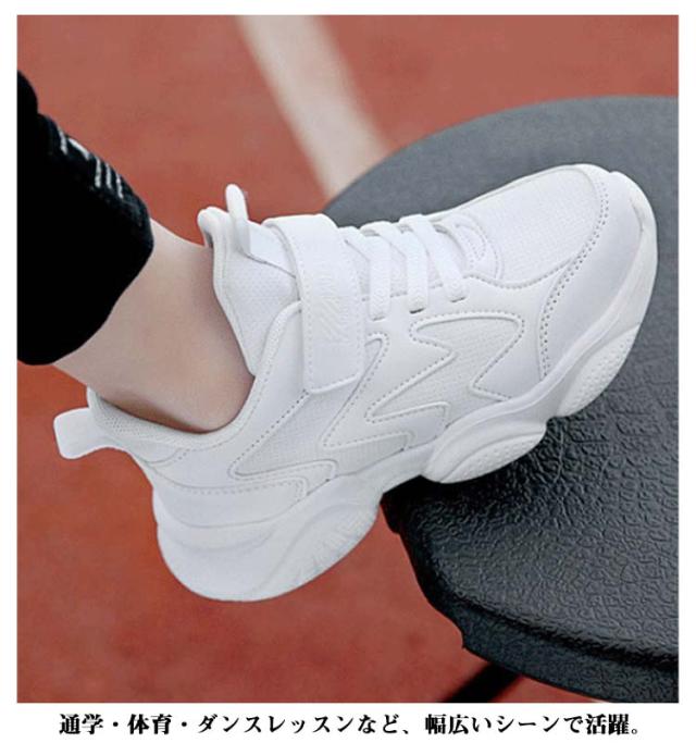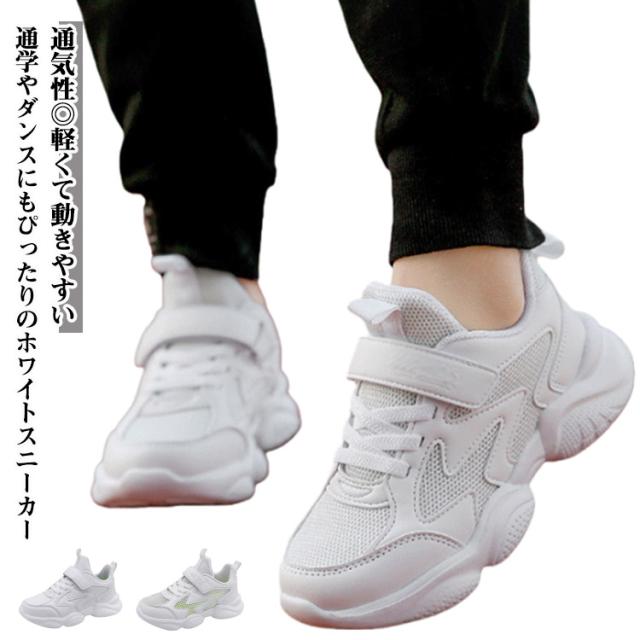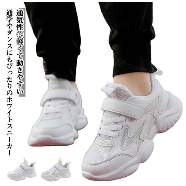 スニーカー キッズ 男の子 女の子 春 夏 秋 冬 白 ジュニア 学生 男女兼用 通学 マジックテープ 内長17cm-25cm ダンスシューズ 運動靴 軽量 快適 通気性 メッシュ 合成皮革 ホワイト 小学生 中学生 スポーツ カジュアル