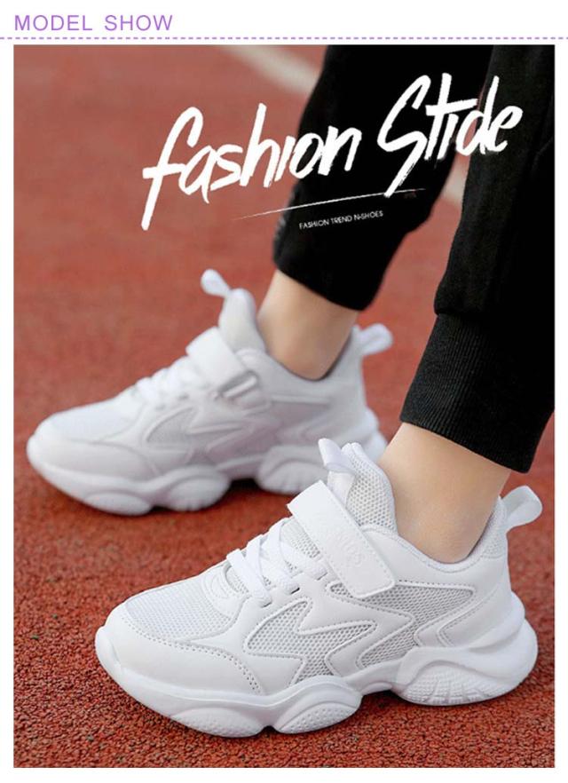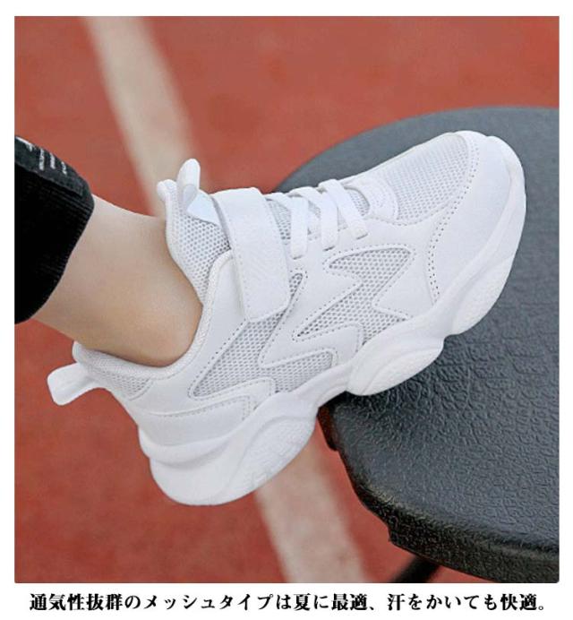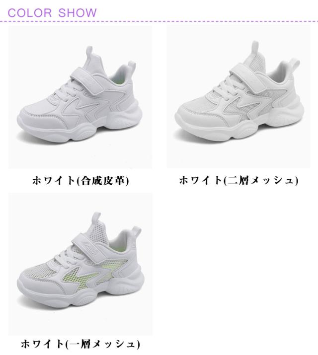 | 通気性◎軽くて動きやすい! 通学やダンスにもぴったりのホワイトスニーカー 軽量設計で長時間履いても疲れにくく、元気に動き回れる。 3タイプの素材展開:合成皮革・二層メッシュ・一層メッシュから選べる。 通気性抜群のメッシュタイプは夏に最適、汗をかいても快適。 マジックテープ式で着脱簡単、小学生・中学生にもぴったり。 17〜25cmの幅広サイズで成長期のお子さまにも対応。 通学・体育・ダンスレッスンなど、幅広いシーンで活躍。 | |