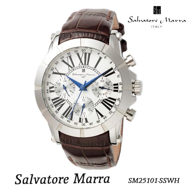 クリスマス 腕時計メンズ Salvatore Marra サルバトーレマーラ メンズ 腕時計 マルチファンクション 多軸クォーツ 5気圧防水 革ベルト SM25101-SSWH 高級感 おしゃれ 記念品 贈り物 プレゼント 送料無料 送料無料