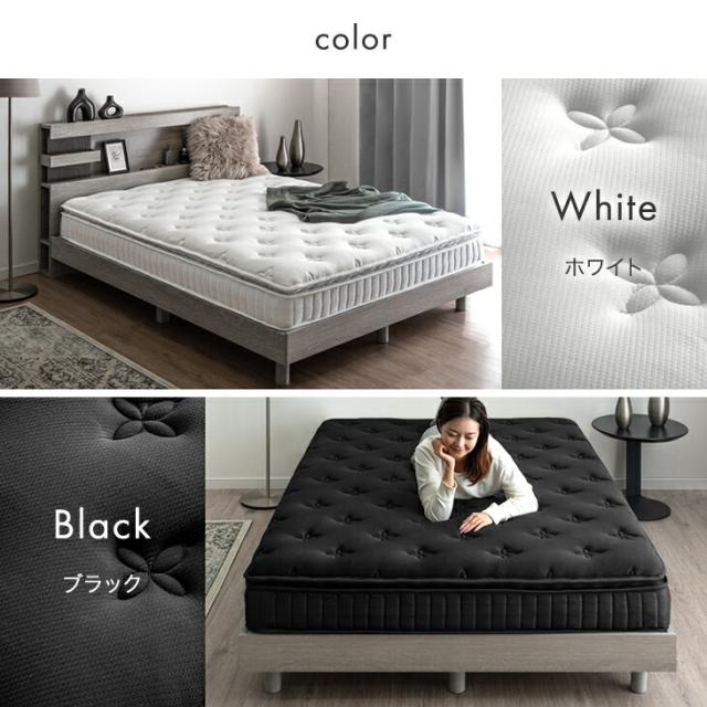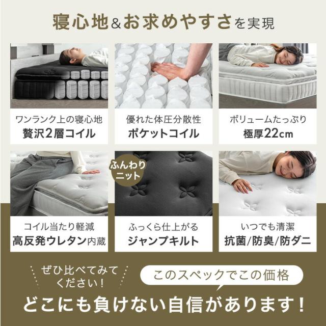 ポケットコイルマットレス 厚み 22cm 体圧分散 通気性 メッシュ ポケットコイルスプリング コイル コイルマットレス ベッドマット マットレス 柔らかい 白 ホワイト 黒 ブラック おしゃれ