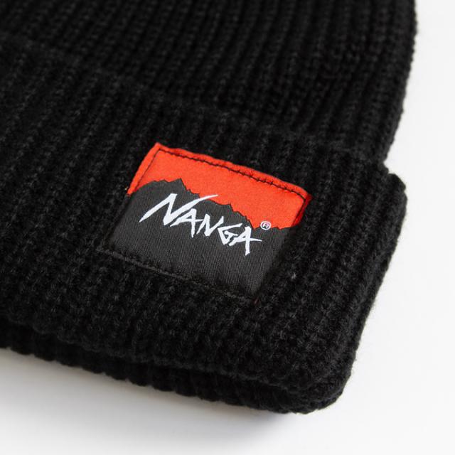 NANGA ナンガ BOX LOGO BULKY BEANIE ボックスロゴ バルキー ビーニー N2532-3C059A ナンガ ニットキャップ ニット帽 帽子 ロールトップ ロゴ 畦編み 2025AW