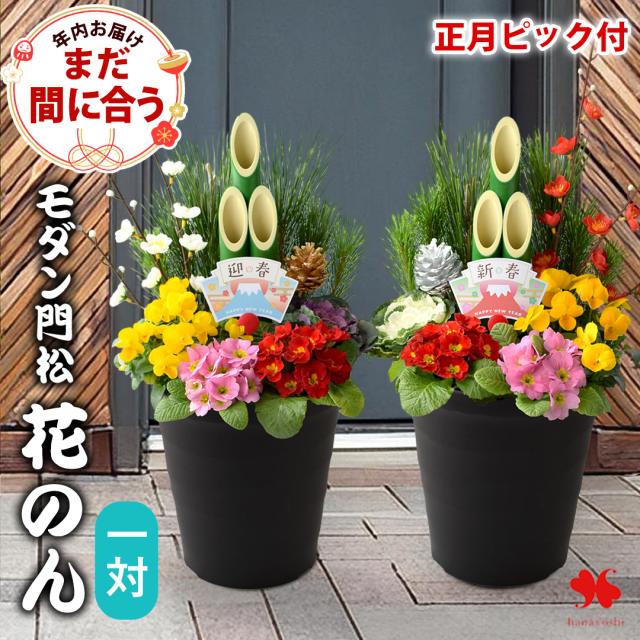 正月 年内お届け 門松 玄関 お正月 迎春 モダン門松 「 花のん ( 一対 )」 正月飾り お正月飾り 玄関用 花 お年賀 ギフト正月 寄せ植え 仕立て 正月花 お正月 お正月後は寄せ植えに変身 迎春 モダン 縁起物 お年賀 ギフト 花飾り おしゃれ 午年 マンション 松 2026 送料無料