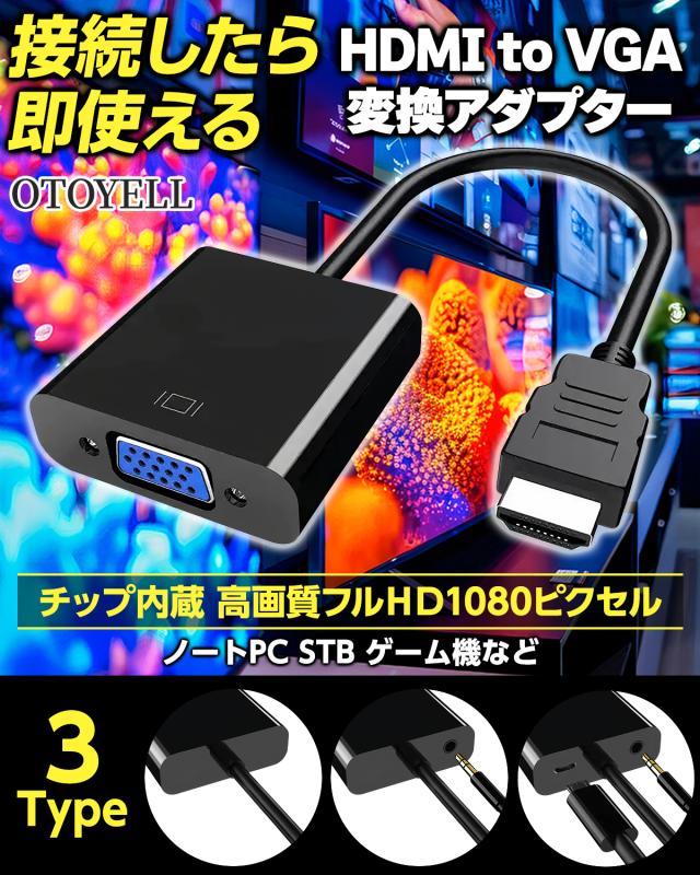 (pro)HDMI to VGA 変換 プラグ 分配器 切替器 ケーブル usb 延長 3.5mm 音声 給電 電源 アダプター iphone wii 車 mini ミニ 拡張 8k 4k スリム