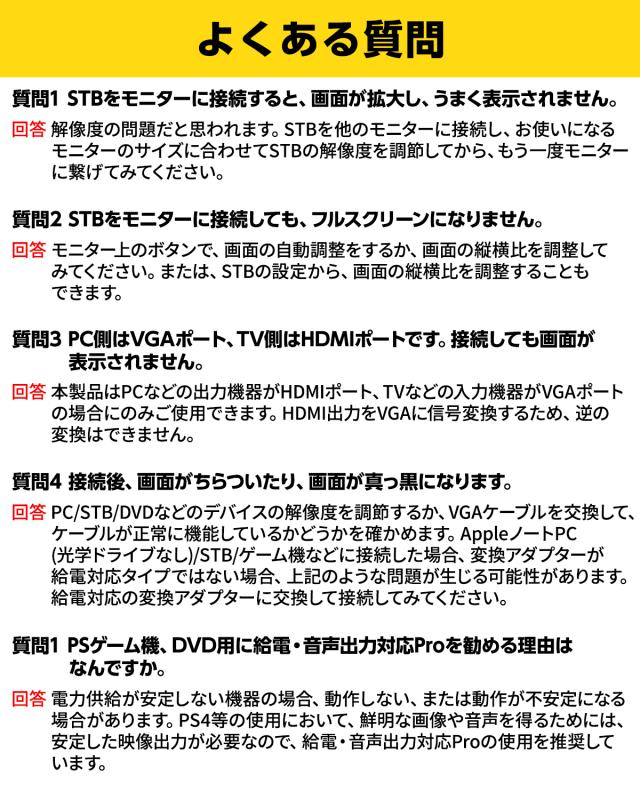 ※特にPSゲーム機やVGAケーブルが5mを超える場合は「給電・音声出力対応Proモデル」推奨