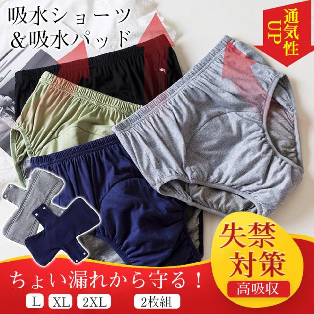 尿漏れパンツ 尿とりパッド 失禁パンツ お年寄り 2枚セット 高齢者 吸水パッド 軽失禁パンツ 防臭 綿混 下着 失禁対策 ちょいもれパンツ