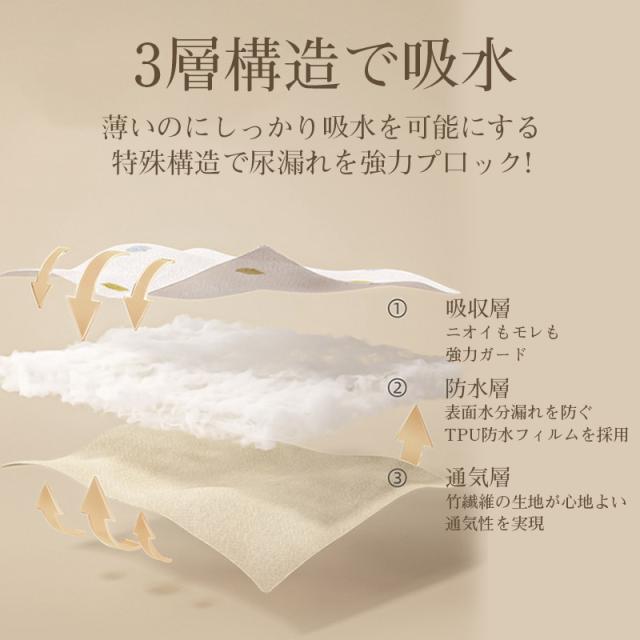 ・この介護パンツは、3層構造で漏れをしっかりガードし、ちょっとした漏れのストレスを解消します。
